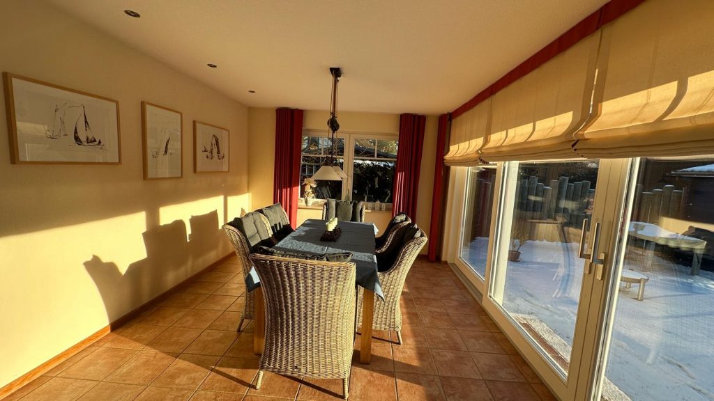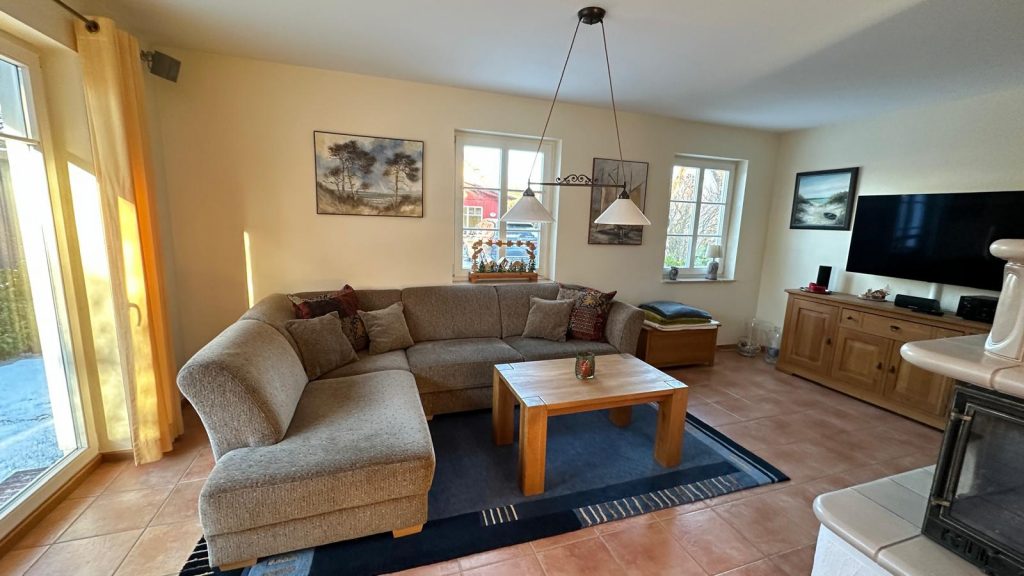 Das komfortabel ausgestattete Ferienhaus verfügt über einen Kamin, eine gemütliche Wohnküche sowie zwei Schlafzimmer und zwei Bäder und bietet Platz für bis zu vier Personen. Es ist der ideale Rückzugsort für einen erholsamen und entspannten Urlaub auf dem Darß.